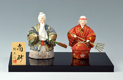 その昔、高砂神社の境内に、一本の根から雌雄の幹が左右に分かれた松が生え、「尉と姥」に姿を変えたイザナギ・イザナミの2神が現れ夫婦の在り方を説きました。 以後、この木を「相生の霊松」と呼び、この2神を縁結びと夫婦和合の象徴として信仰するようになりました。